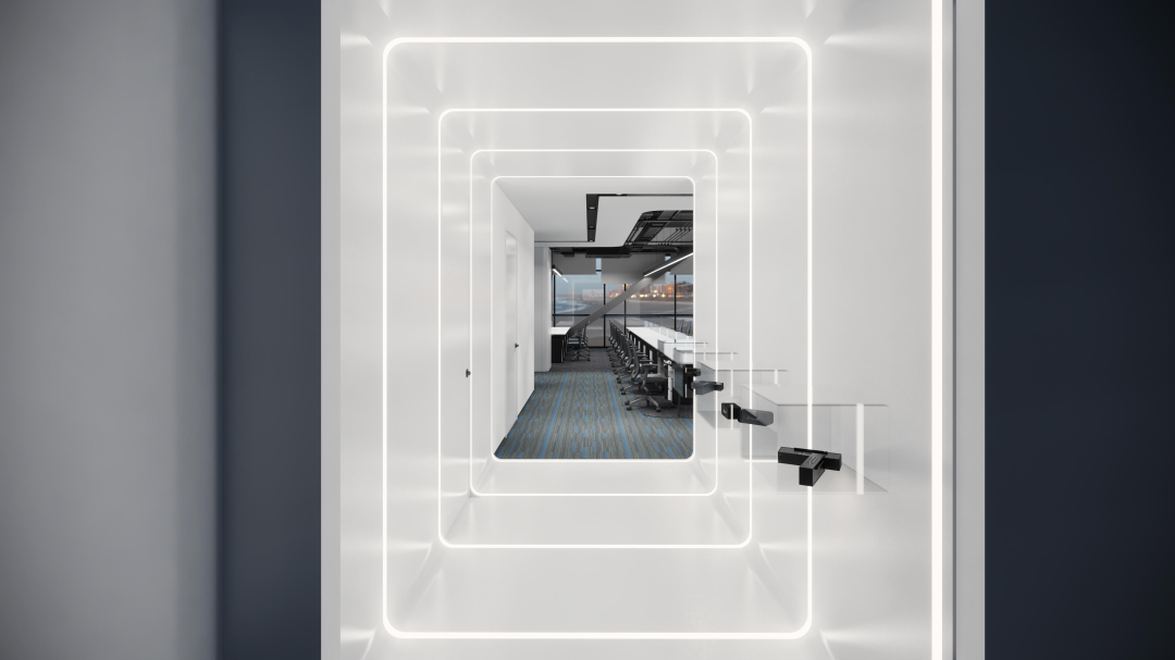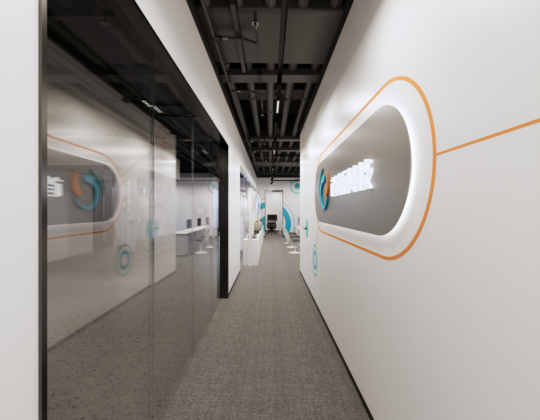 以白色简约为主,将LOGO的撞色体现在空间中,凸显不一样的科技碰撞感。将办公空间与展示空间相互结合,在有限的空间里创造出空间最大的价值。